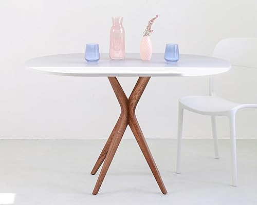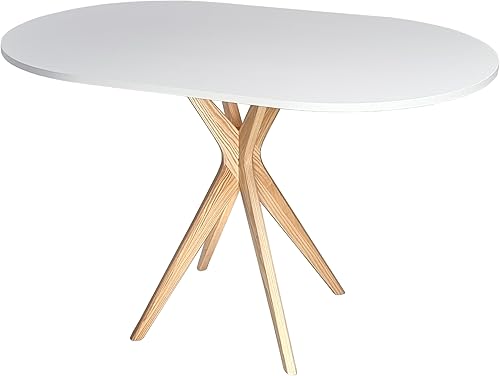 RAGABA Petite table à manger ovale 100 x 75 cm, cadre en X, table à manger pour 4 personnes, bois massif, moderne, peu encombrante - Beige