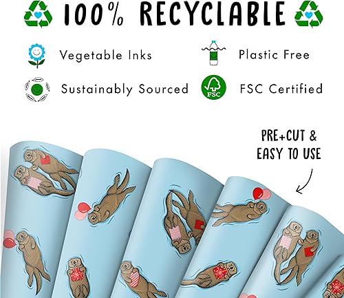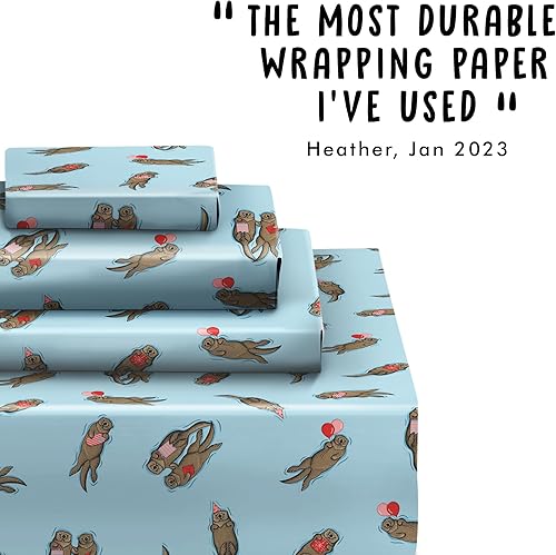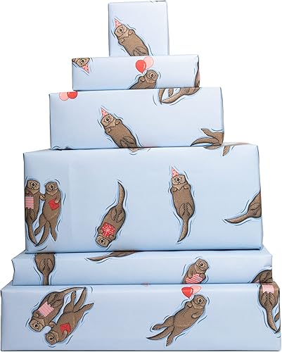 Central 23-6 feuilles de papier d'emballage - loutres d'anniversaire - emballage cadeau bleu pour hommes femmes - amis - recyclable et fabriqué au Royaume-Uni