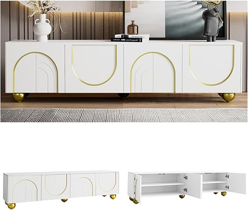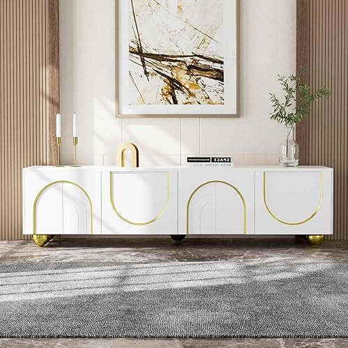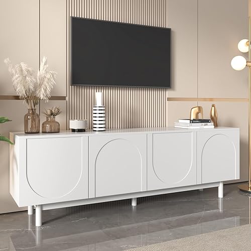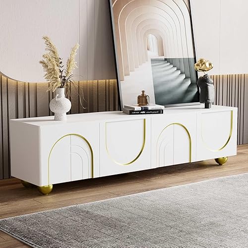 KOMHTOM Meuble TV Blanc avec 4 Portes Meuble télé Meuble de Rangement avec séparateurs réglables, Table Television Salon Meubles de Salon (B)