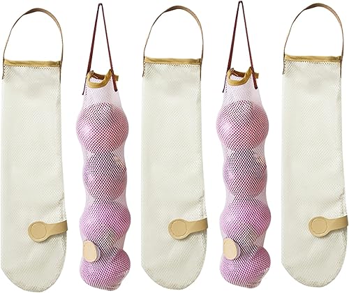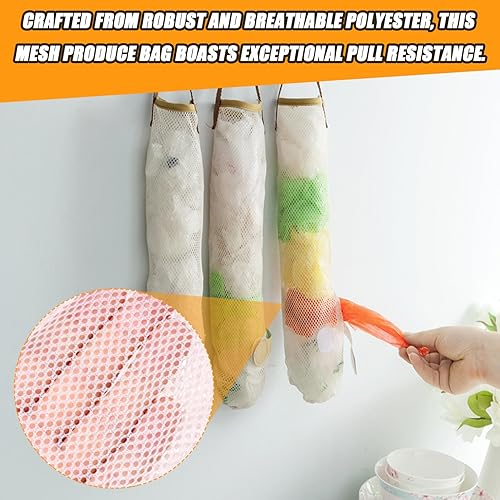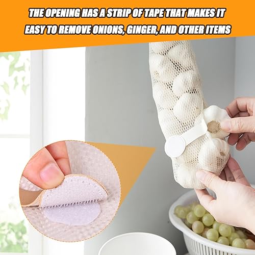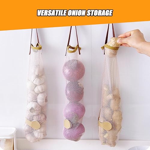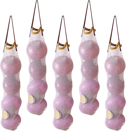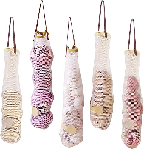 Jorzer Lot de 5 sacs de rangement en maille à suspendre pour oignons, sacs à oignons, sacs réutilisables en maille pour fruits et légumes