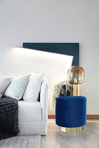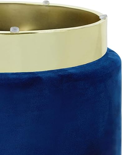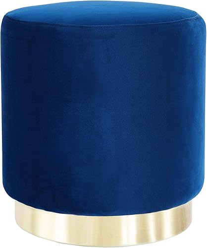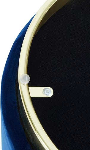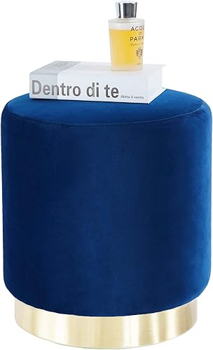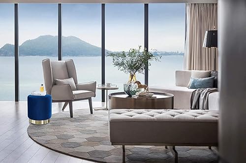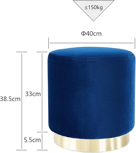 Suhu Pouf Tabouret Velours Coiffeuse Repose Pied Rond de Salon Design Chaise Moderne Siège Vintage Deco Bas en Métal Gold Bleu