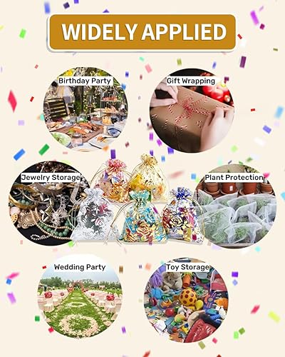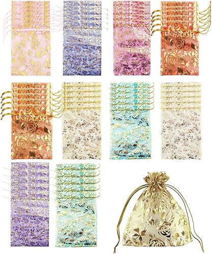 TOZBLEU Sachets,50pcs Sacs En Organza,10 Couleur Organza Pochettes Sachet avec Motif étoile et lune Cadeaux Bijoux Quotidiens Ligne Or Ruban Sac de Bonbons pour Les Festivals de Mariage,9 * 12cm