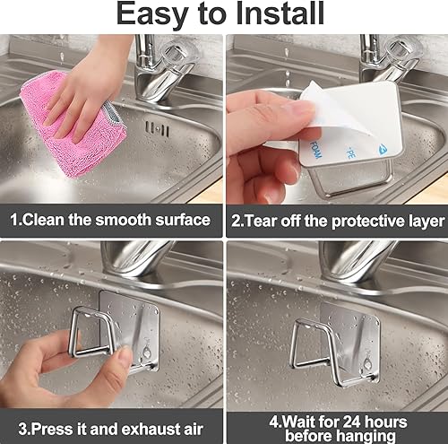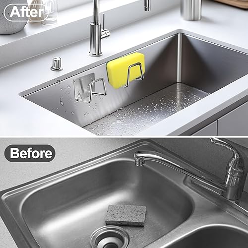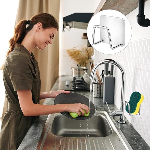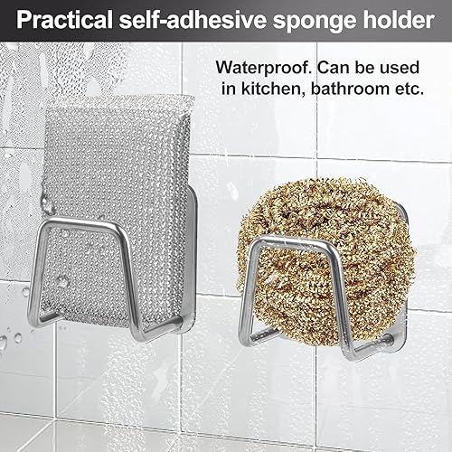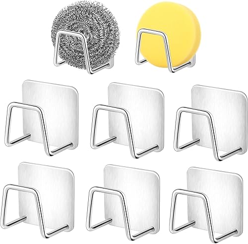 TDUNSYA 6 Pièces Porte Eponge Evier Cuisine, Porte Eponge Evier Auto Adhesif, INOX, Support Eponge INOX, Support Eponge Evier Cuisine pour Le Rangement de Cuisine et Salle de Bain