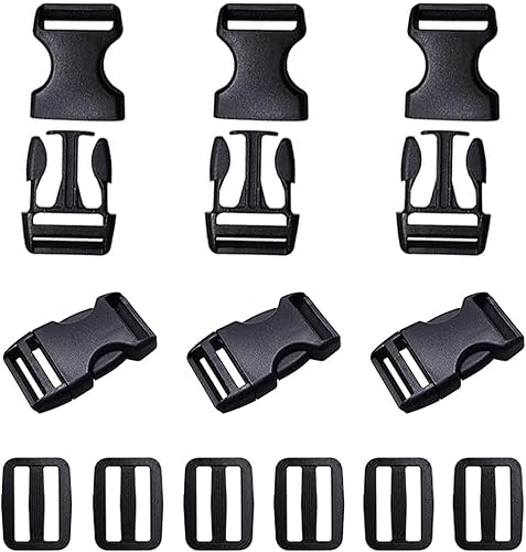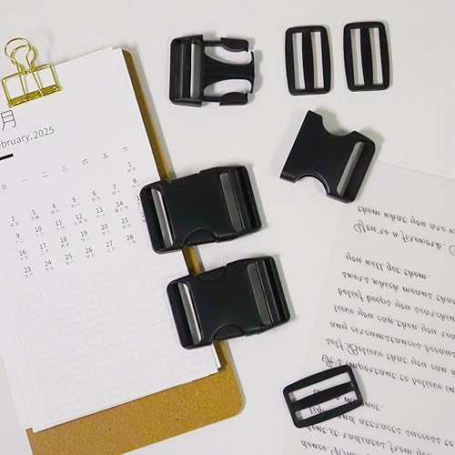 CMBBZZY Lot de 6 boucles de sac à dos en plastique 38 mm avec fermeture à glissière réglable pour sac à main, sac à dos et sangle de bagage Noir, Noir , 38mm