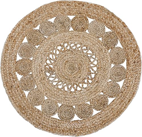 LUXOR- living Tapis Balo - Tapis Rond en Jute - Convient également comme Tapis de Chambre à Coucher - Tapis bohème Durable Beige - Produit Naturel - 60 cm - Rond