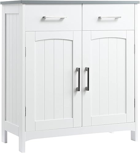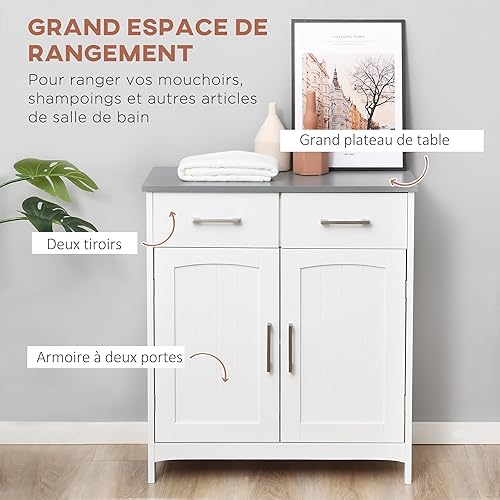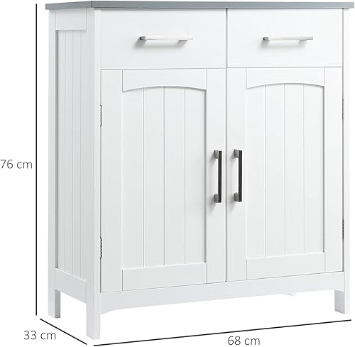 kleankin Meuble de Salle de Bain, Meuble de Rangement avec 2 tiroirs, Placard avec Portes, étagère réglable, Armoire de Salle de Bain, Cuisine, Salon, 68 x 33 x 76 cm, Blanc