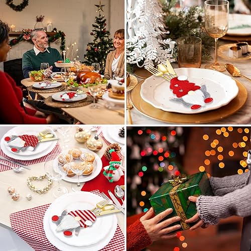Porte-couverts Feutre de Noël, 12 Sacs à Couverts Sapin de NoëL, Sacs à Couverts Gris Sapin de NoëL, Couteaux Fourchettes Cuillères Vaisselle Sacs à Couverts, Décoration pour Table Fête de NoëL