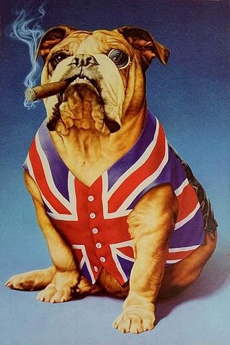 Kit de peinture diamant 5D à faire soi-même - Motif bouledogue anglais avec drapeau - Broderie au point de croix - Artisanat pour décoration murale de la maison
