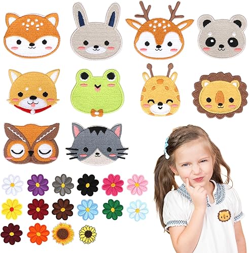 26 Pieces Patch Thermocollant à Coudre Enfant, Animaux Ecusson Iron on Patches, Ecusson a Coudre Thermocollant Patch Brodé, DIY Broderie Autocollant pour Vestes Sacs dos Jeans Réparation Bricolage