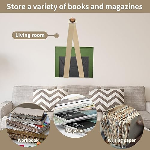 leyomgamz Porte Revues Bureau Porte-Magazines Porte-Journaux, Porte-revues en métal et cuir Porte-journaux Mural sans trou dans les murs, compartiment magasines pour salle bain ou salon à simplement