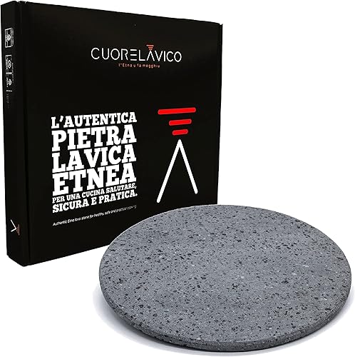 CUORE LAVICO - Plaque réfractaire en pierre de lave ETNEA ronde pour pizza diamètre 33 cm - SP. 1 cm compatible avec four illille - Fabriqué en Italie