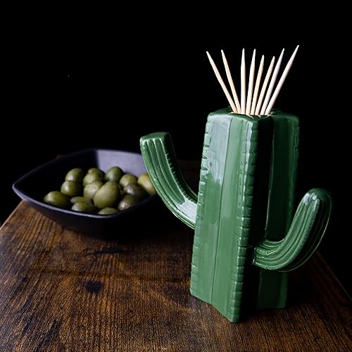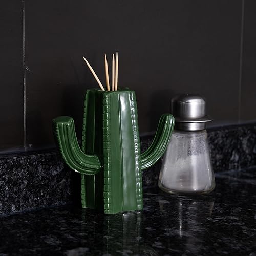 fisura. - Porte Cure-Dents Original en Forme de Cactus. Distributeur de Cure-Dents Vert et Amusant. Porte Cure-Dents en céramique. Boite à cure-dents12 x 11 cm.