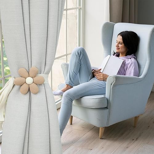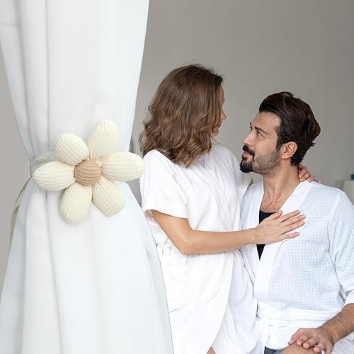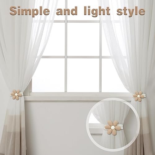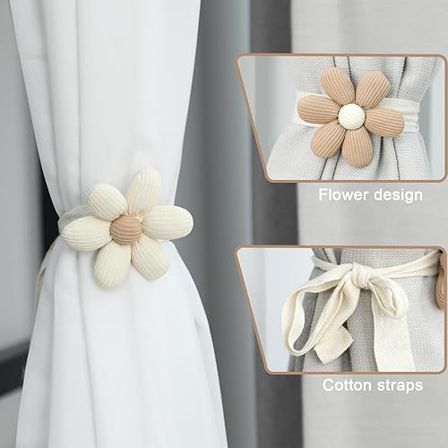 ElevateTech Lot de 4 embrasses de rideaux bohèmes à motif floral mignon pour rideaux simples, motif marguerite, embrasses de rideaux décoratives pour chambre à coucher, fenêtre (beige/kaki)