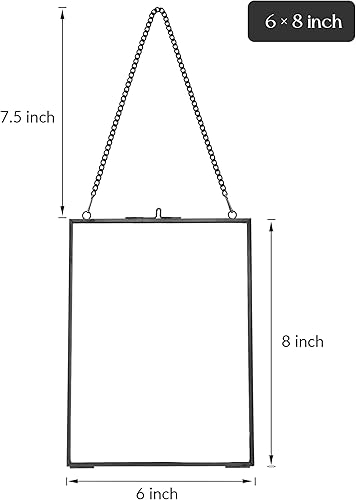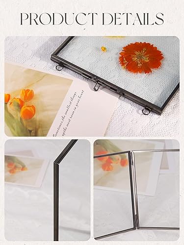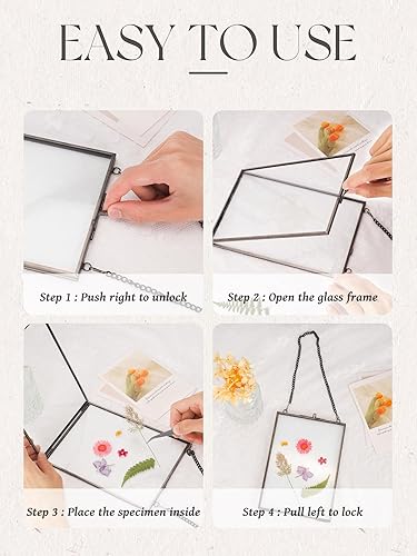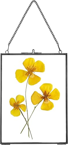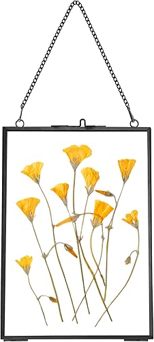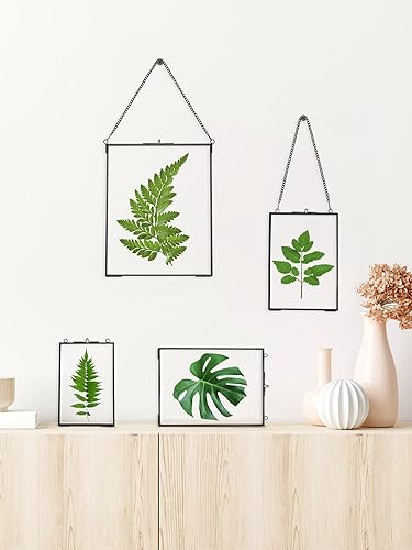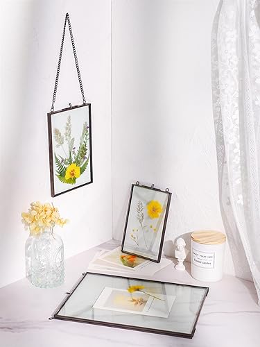 REDHUGO Cadres pour fleurs pressées, cadres flottants en verre pour afficher des spécimens de plantes séchées, photos, cadre photo en laiton avec chaîne suspendue, double verre clair, rectangle