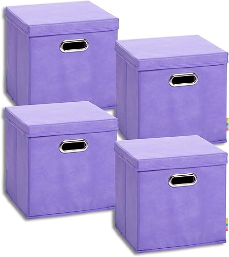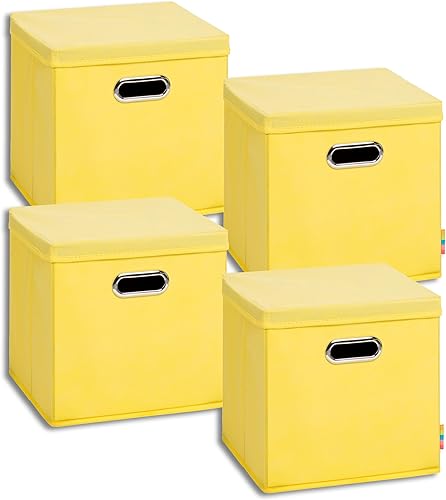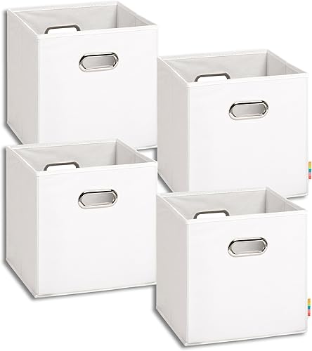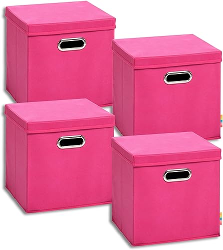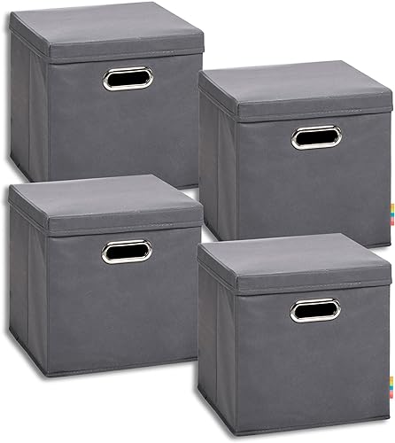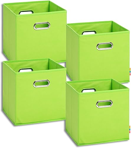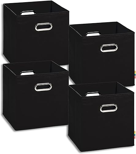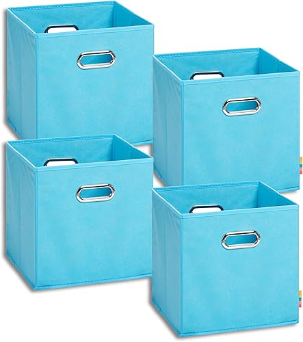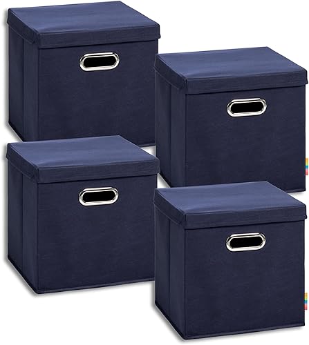 Storanda | Lot de 4 boîtes de rangement 28 x 28 x 28 cm | Poignées larges des deux côtés | Stable et pliable | Boîte d'étagère pour étagère cube | Bleu foncé