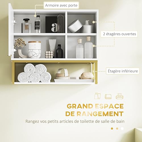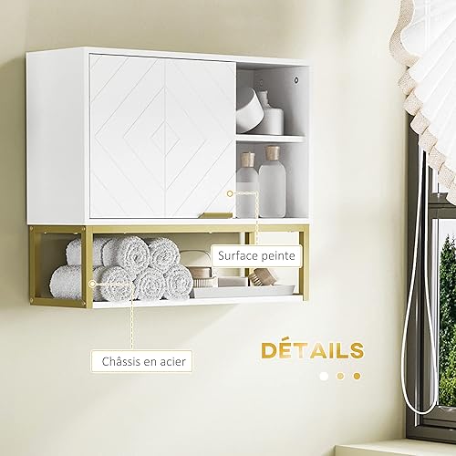 kleankin Armoire Murale de Salle de Bain - Meuble de Rangement de Toilettes avec niches Placard étagère réglable dim. 60L x 20l x 51H cm - Panneaux de Particules