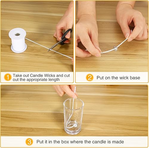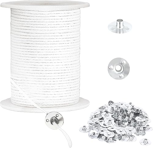 Mèches de Bougie, 61m Mèche pour Bougie et 100 Pièces Base de Mèche de Bougie, Kit de Fabrication de Bougie, Mèches de Bougie Naturelles Base pour Mèche de Bougie, pour la Fabrication de Bougies