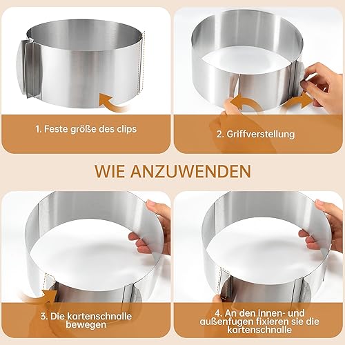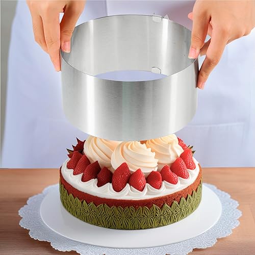 Elalove Cercle à Pâtisserie Réglable 6-12 Pouces en Acier Inoxydable avec Échelle Visuelle pour Tarte Gâteau Cheesecake Anneau à Tarte