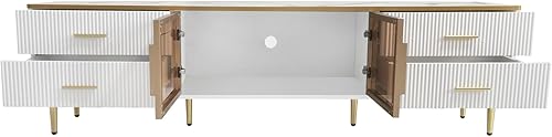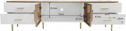 KOMHTOM Table basse marbrée blanche - Buffet avec deux tiroirs et un compartiment de rangement - Armoire multifonction avec lumière LED intégrée pour salon, chambre à coucher et entrée (B)