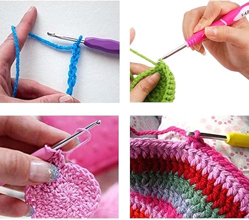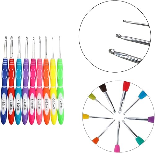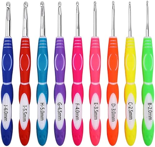 Niaciswe Crocheter 9 Pièces Crochet à Tricoter en Aluminium Crochet Ergonomique 2,0 à 6,0 mm Crochet Aiguilles À Tricoter Crochets Colorés avec Poignée Douce Accessoires Couture DIY pour Débutants