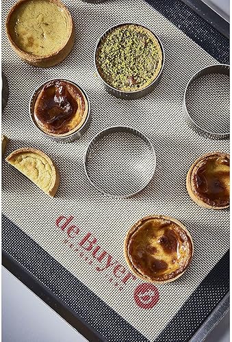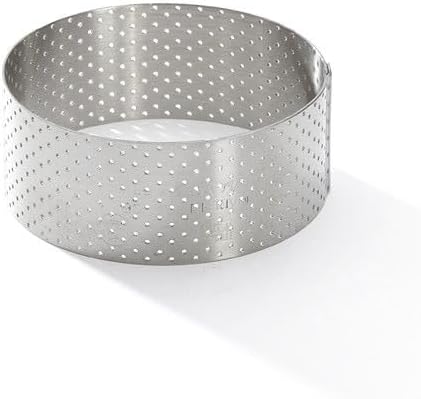 De Buyer - Cercle à tarte rond VALHORNA en inox perforé - 8,5 x 3,5 cm - Fabriqué en France, Technologie AIR SYSTEM, Micro-Perforations pour Cuisson Rapide et Homogène pour Résultats Croustillants