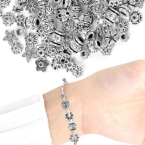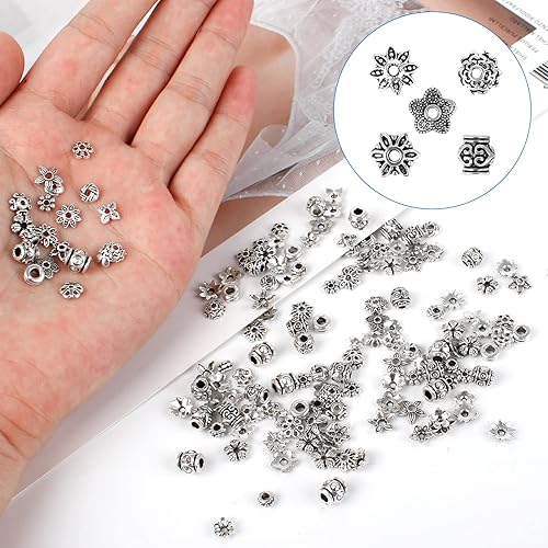 Perles Intercalaires Tibétaines en Argent, 160Pcs Perles d’Espacement Tibétain en Acier d'Alliage pour Création de Accessoire Bijou l'Artisanat DIY Colliers Bracelet (20 Styles)
