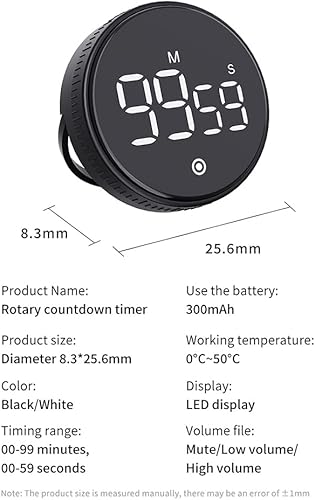 Minuteur numérique de productivité magnétique, fonction de comptage vers le haut/bas, horloge rechargeable avec support et grand écran LED, fonctionnement silencieux, volume réglable, outil de gestion