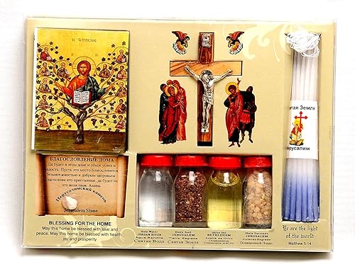 Kit de bénédiction pour la maison, bouteilles, croix et bougies de la Terre Sainte Jerusalem
