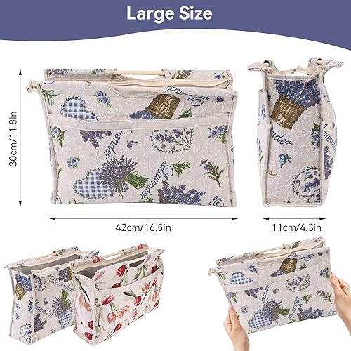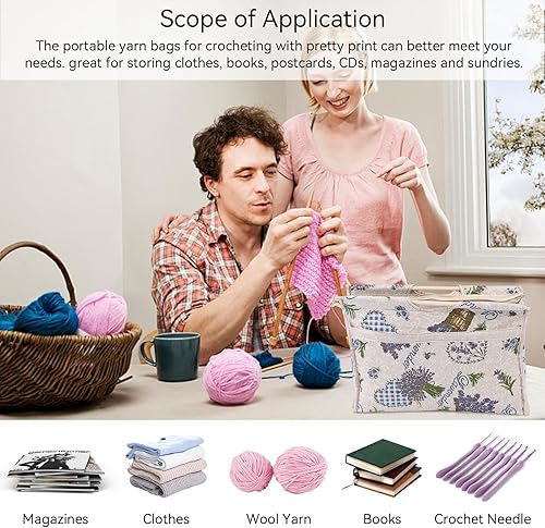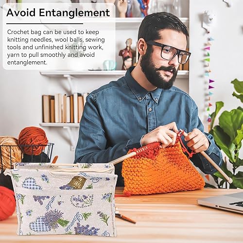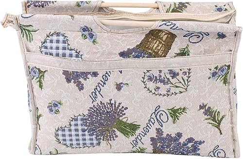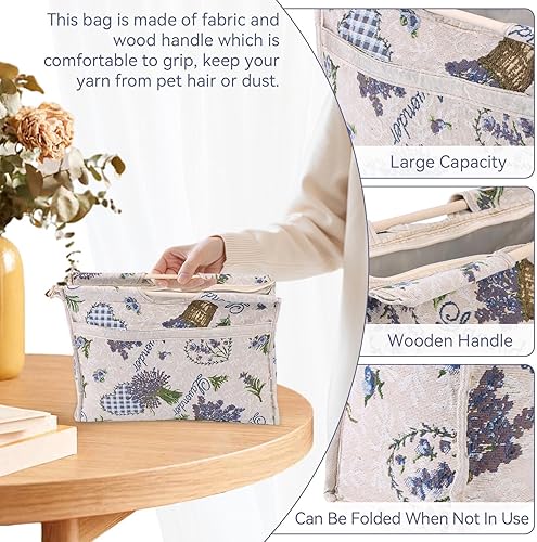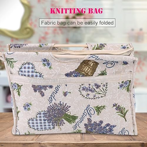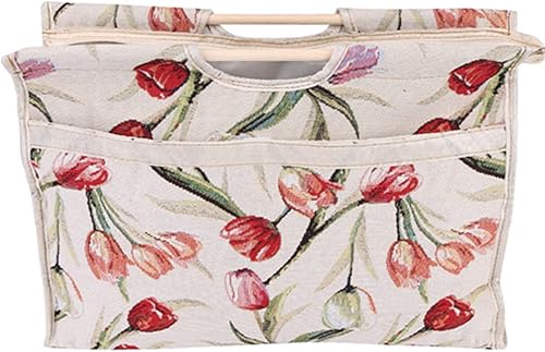 Organisateur de Tricot, 1pc Sac de Rangement en Tissu tissé avec Manche en Bois Pratique Exquis pour Aiguilles à Tricoter Outils de Couture(Une Rose)