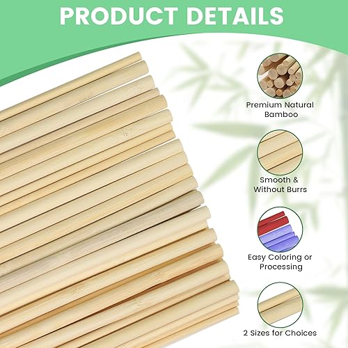 Lot de 60 bâtonnets ronds en bois - 2 tailles - Diamètre 6 mm + Ø 10 mm x 30 cm - Baguettes rondes en bois - Pour bricolage