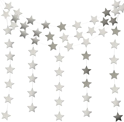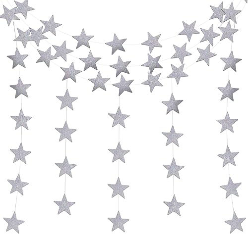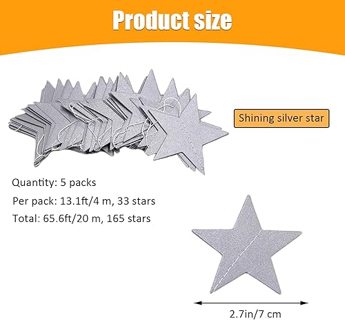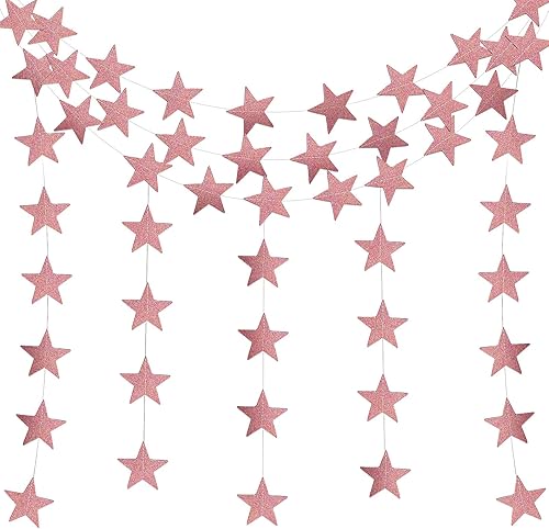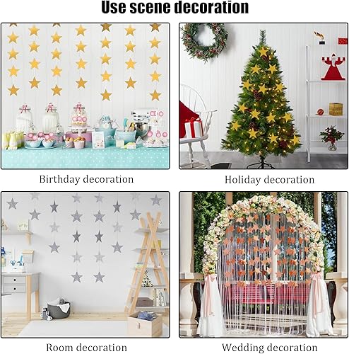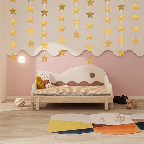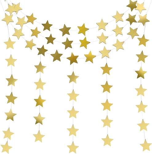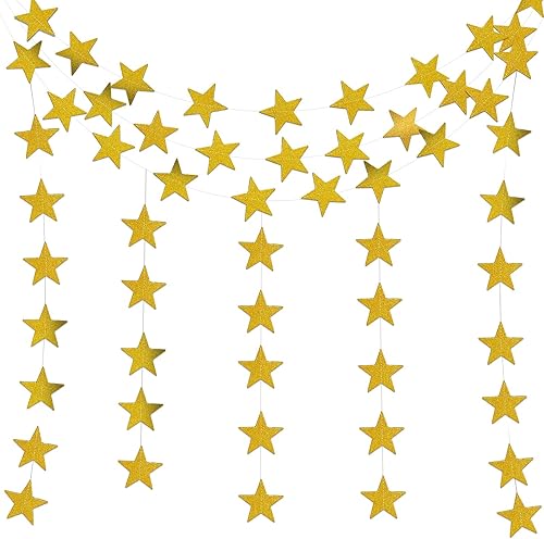 WUMUZAI Lot de 5 guirlandes d'étoiles à suspendre - 20 m - En papier pailleté - Banderole pour anniversaire, fête prénatale, Noël, décoration de mariage, vacances, or pailleté