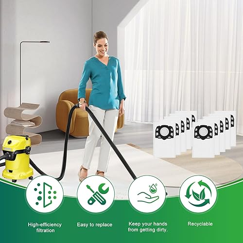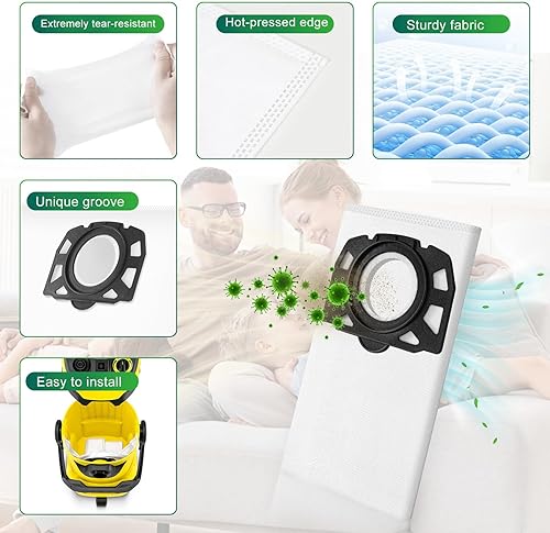 SEEALLDE Sacs d'aspirateur pour Kärcher WD2 WD3 KWD1 KWD2 KWD3 WD3.200-WD3.800M KFI 357 Sacs pour Kärcher MV3 SE4001/SE4001Plus/SE4002 K2201-K2901 K3000 Plus et A2200-A2901 F