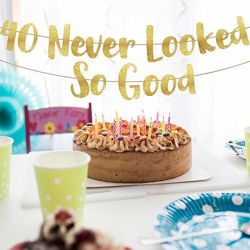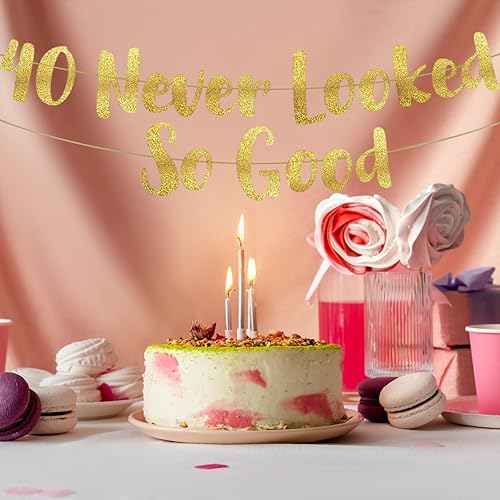 LUMOOM Bannière amusante, 40 ans « Never Looked So Good » - Décoration d'anniversaire - 40e anniversaire - Or - Pour femme et homme - Accessoires de fête