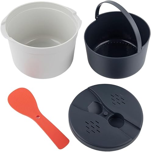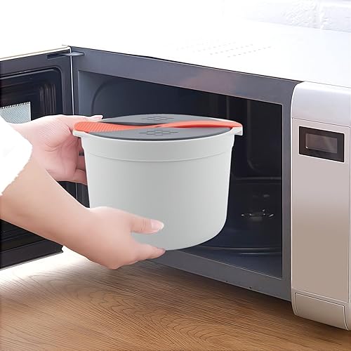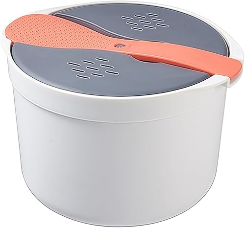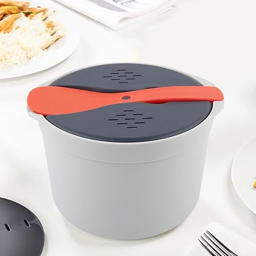 Cuiseur à riz pour micro-ondes, cuiseur vapeur de 2 L avec passoire, cuillère à riz, couvercle résistant aux hautes températures pour la maison et le bureau (orange)