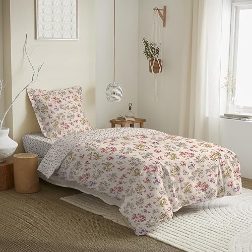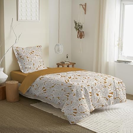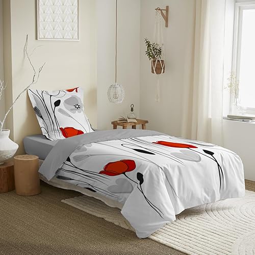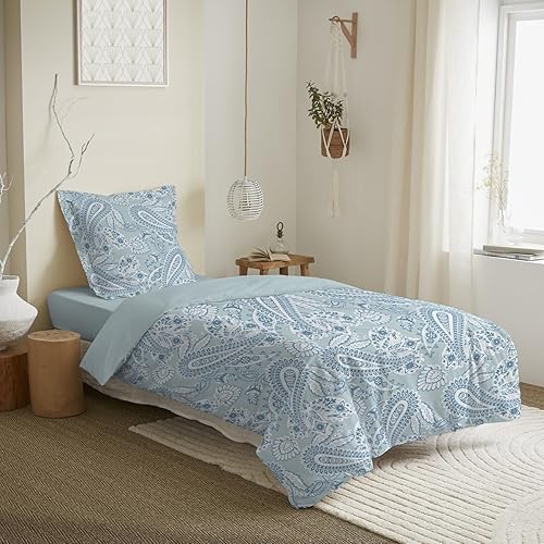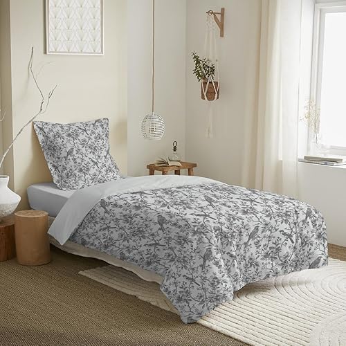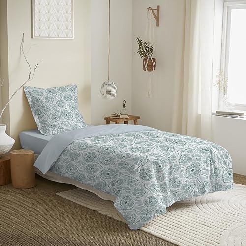 UNIVERSDECOR Parure de Couette 140 x 200 cm réversible pour lit 90 x 190 cm (Parure de Couette réversible lit 90 x 190 cm, Agathe Celadon)