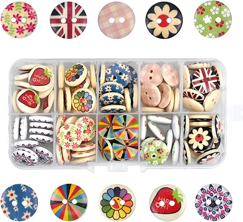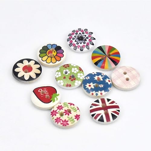 Ronde Boutons en Bois100 Pièces 10 Styles Mercerie Bouton 2 Trous Boutons Enfants à Coudre de Couture Naturel, Petits Boutons Ronds pour Artisanat Couture Aiguilles à Tricoter Bricolage, 15mm
