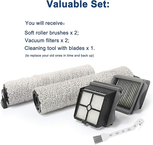 HUAPX Rouleau de Brosse de Rechange et Filtre HEPA pour Tineco iFloor3/Floor One S3 Accessoires pour Aspirateur Sec et Humide,2 Rouleaux de Brosse,2 Filtres,1 Brosse de Nettoyage