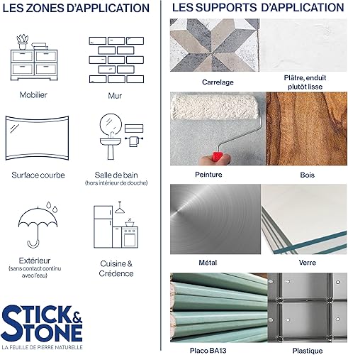 Stick&Stone by StoneLeaf - Feuille de pierre 100% naturelle adhésivée - Modèle OSLO - Paquet de 10 feuilles 30x60 cm