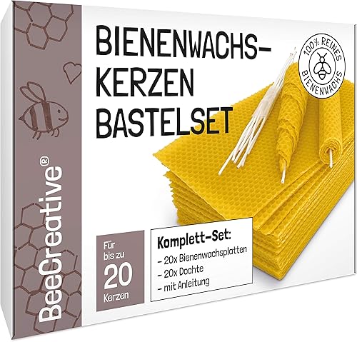 BeeCreative Kit de fabrication de bougies en cire d'abeille pour 20 bougies, 100% cire d'abeille pure, fabriquez vos propres bougies en cire d'abeille avec des feuilles de cire d'abeille