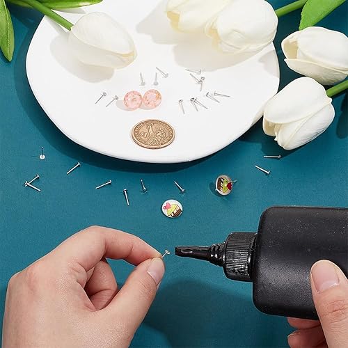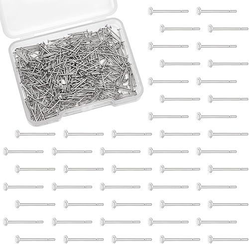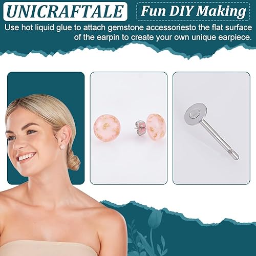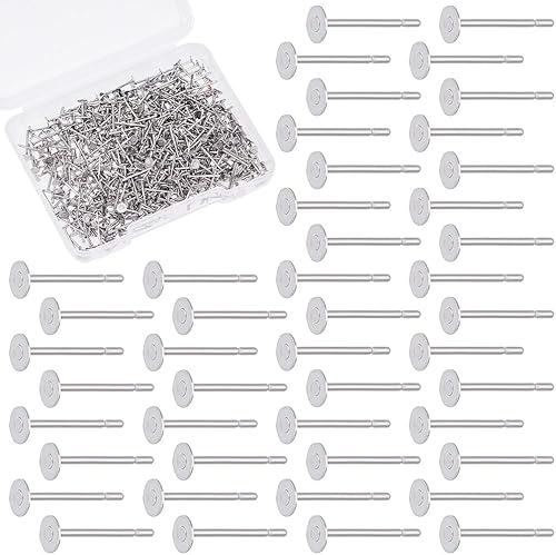 UNICRAFTALE 400 pièce Clous Boucle D'Oreille Flat Pad Acier Inoxydable 2mm Tige Boucle D'Oreille et Dos de Boucles d'oreilles Plat pour Fabrication de Boucles d'oreilles de Bijoux
