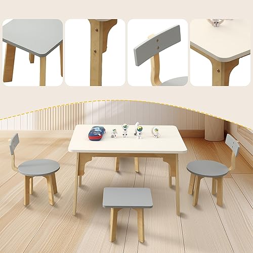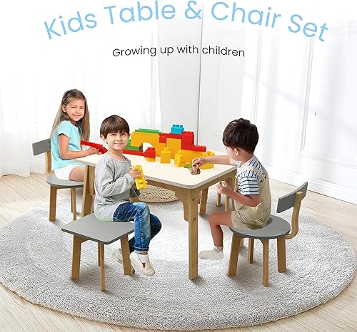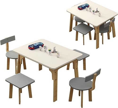 hoopyosms Table Enfant avec 4 Chaises en Bois, Ensemble Table et Chaise Montessori pour Salle de Jeux et Chambre Enfant, Bureau Polyvalent pour Dessin, Activités et Apprentissage pour Enfants, Rose