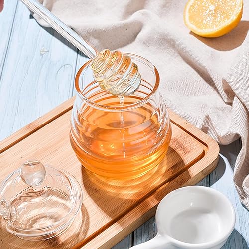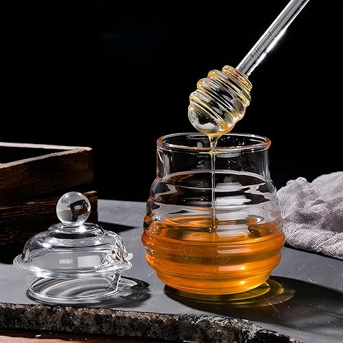 xocome Pot à Miel en Verre avec Couvercle et Cuillère à Miel, Pots à Miel pour Servir du Miel et du Sirop (280 ml)