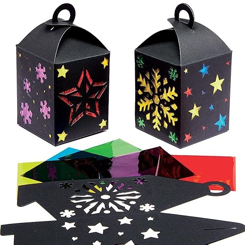 Baker Ross Lanternes à Effet Vitrail motif Flocons de Neige et Etoile - Lot de 4, Activités Manuelles pour Enfants (FX267)