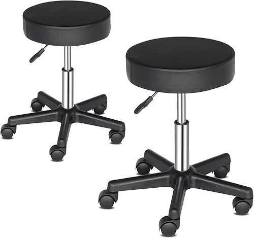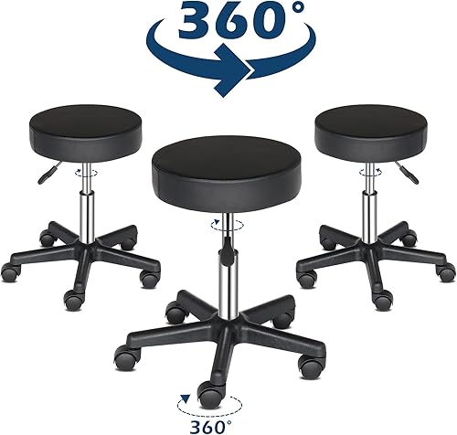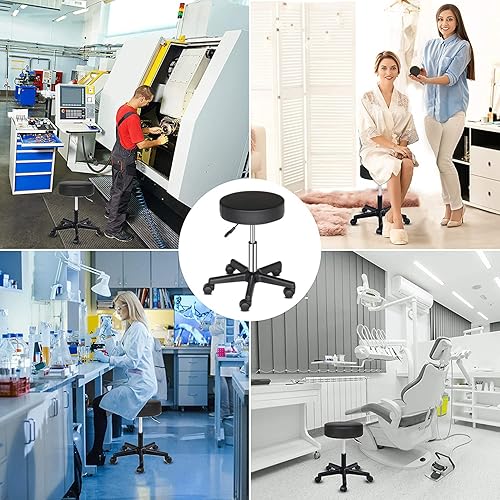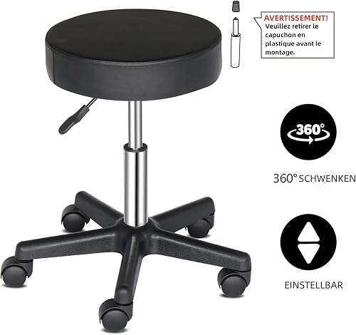 TactFire Tabouret de Bureau, Tabouret à roulettes avec Rotation 360°, pour Salon de Massage, Bureau, Clinique (1, Noir)
