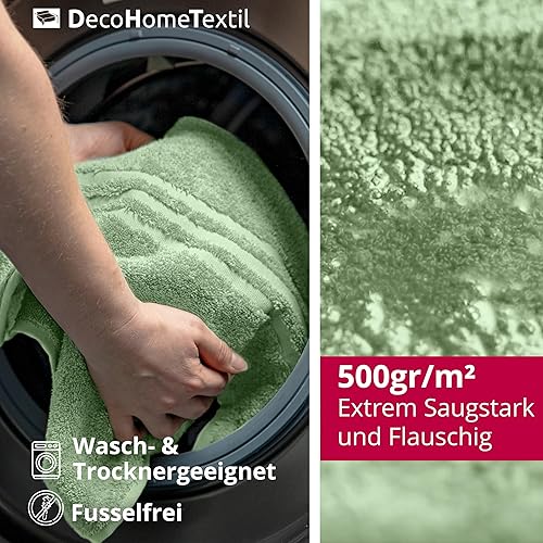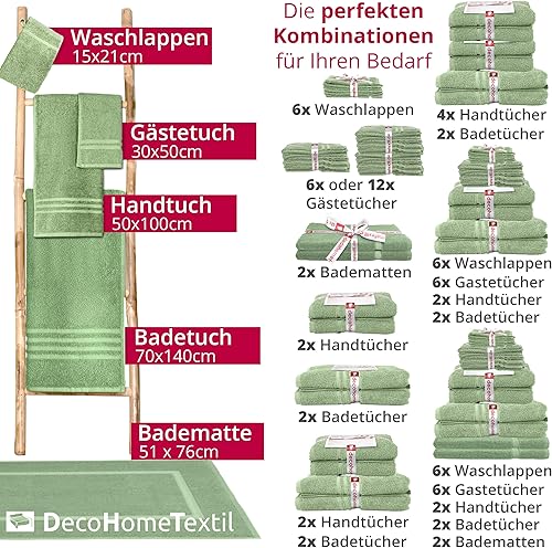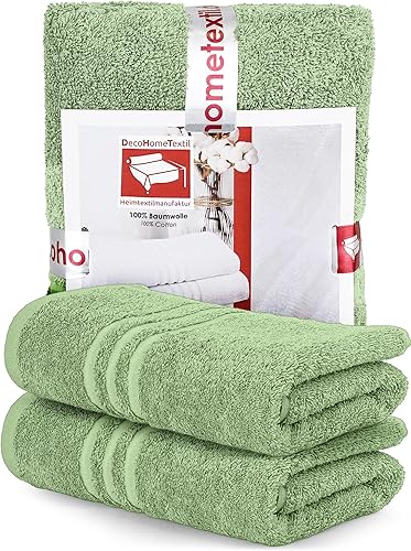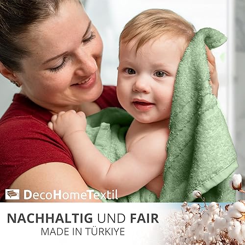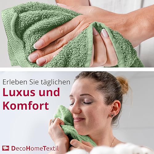 DecoHomeTextil - Lot de 2 serviettes de toilette vert sauge en 100 % coton - De qualité supérieure - Douces et absorbantes