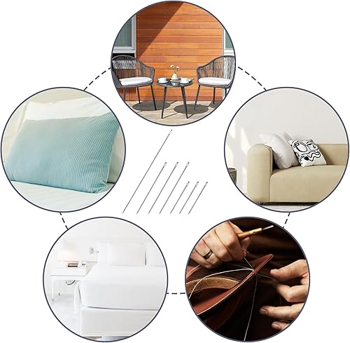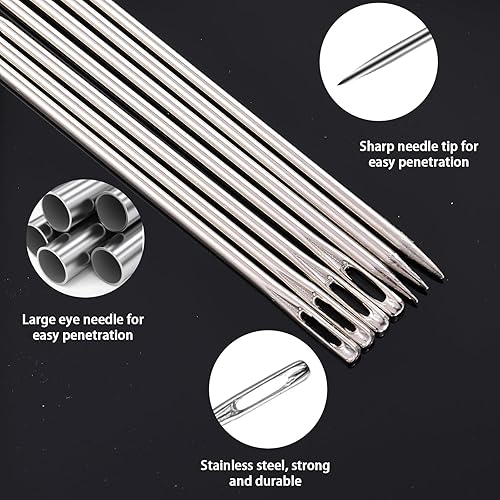 Gjinxi Lot de 7 Aiguilles à Coudre Extra Longues avec Grand Chas pour Réparation du Cuir et de la Toile Aiguilles à Coudre Professionnelles pour Tissus d'Ameublement et Projets de Bricolage
