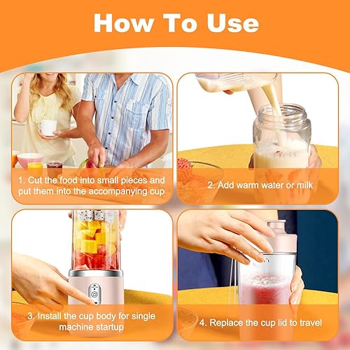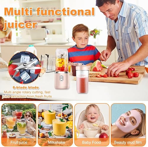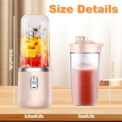 CLIUNT Portable Smoothie Maker, 400ML Smoothie Mixer avec Tasses, Rechargeable Mini Blender Smoothie avec 6 Lames, pour la Préparation de Milk-Shakes, jus de Fruits, Smoothies