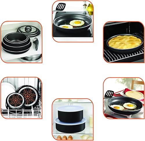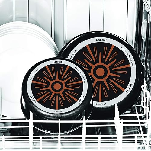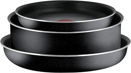 Tefal Ingenio Essential Set de 3 pièces, Noir, Poêles 22/26 cm, Sauteuse 24 cm, Batterie de cuisine tous feux sauf induction + four, Fabriqué en France L2007802