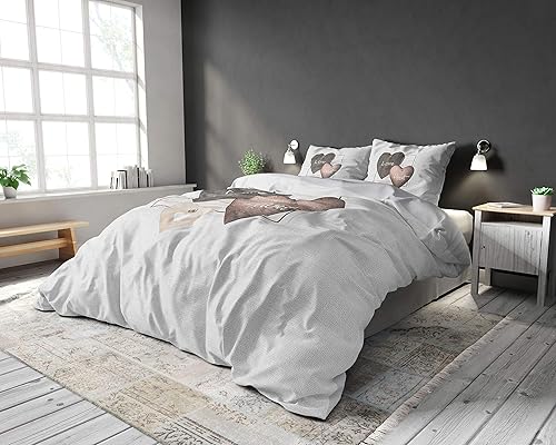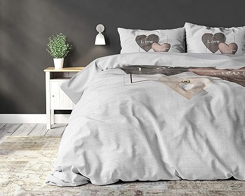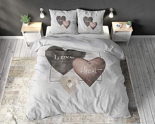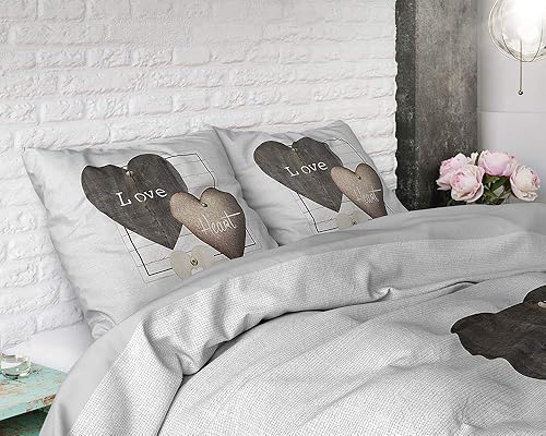 SLEEP TIME Housse De Couette 100% Coton Coeurs d'amour, 200 x 200cm, + 80 x 80cm, Gris