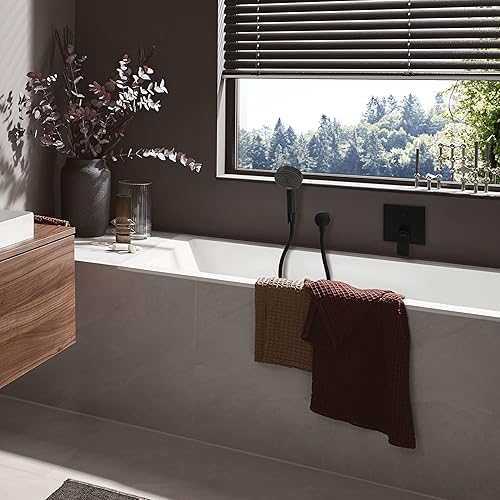hansgrohe Pulsify Select S 24306670 Set de douche avec pommeau de douche à économie d'eau (EcoSmart, 3 types de jet, dont PowderRain), flexible de douche 1,25 m et support de pommeau de douche, noir